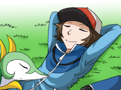 お昼寝中のトウヤとジャローダ。とにかく仲が良い、というよりもコンビネーション抜群組です。